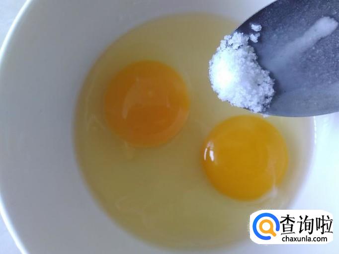 鸡蛋打到碗里,加适量的盐搅拌均匀。
