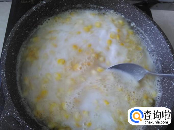 倒完后再煮1分钟左右,煮的期间要不停地搅拌。