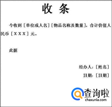 (1)如果标题写成“收条”正文写在标题下面一行。空两格。