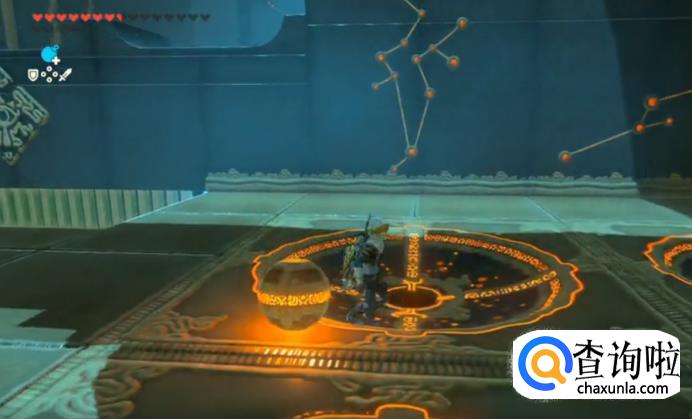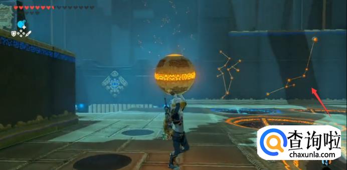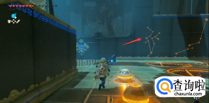 接着,看看两边墙壁上的星座图案,记住这些星座在远方星图上分别都有几个。比如下图第一个是三颗星,然后对照星图数一下一共有5个,下去将球拿起来,放到从上往下数第5格里即可。