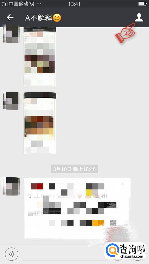进去聊天窗口,点击界面右上角的人形图标,如图所示。