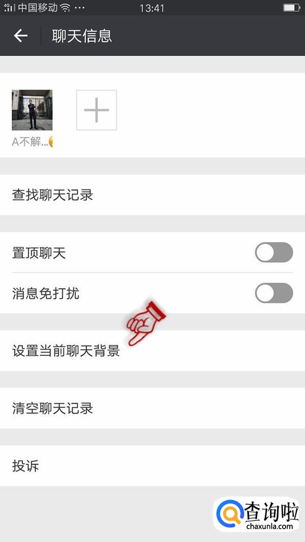 在弹出的界面,点击设置当前聊天背景选项,如图所示。