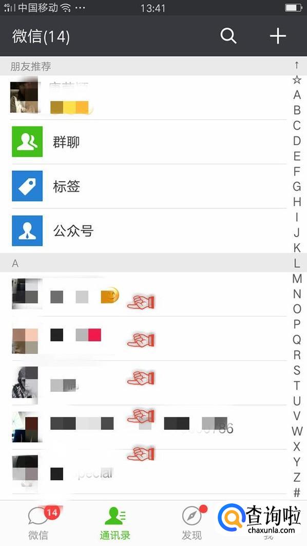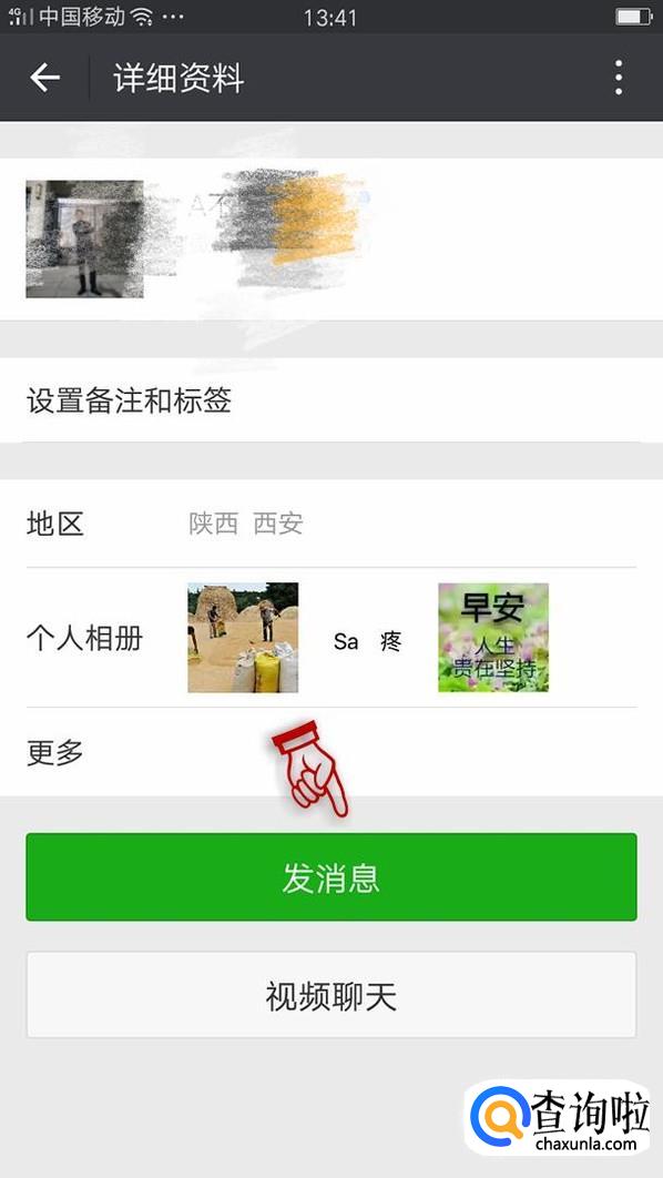 在通讯录界面,可以看到自己的好友,随便点击一个,如图所示。
