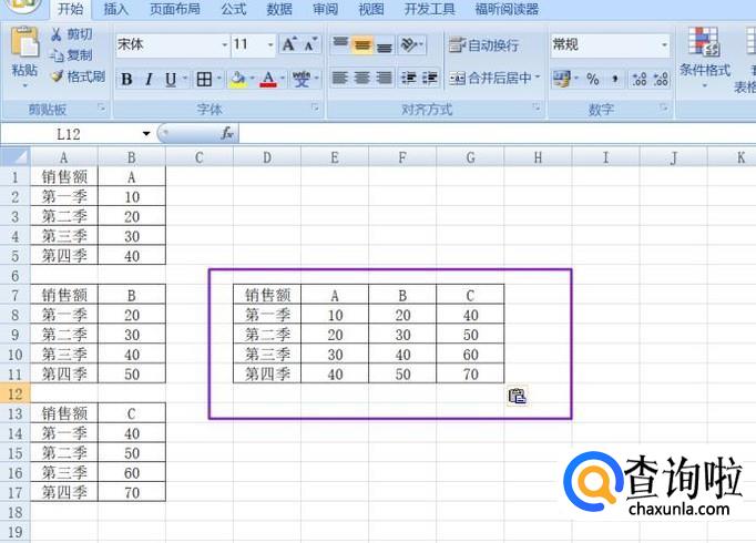 想要合并显示,首先,我们得对这组数据进行合并,如图所示,进行合并;