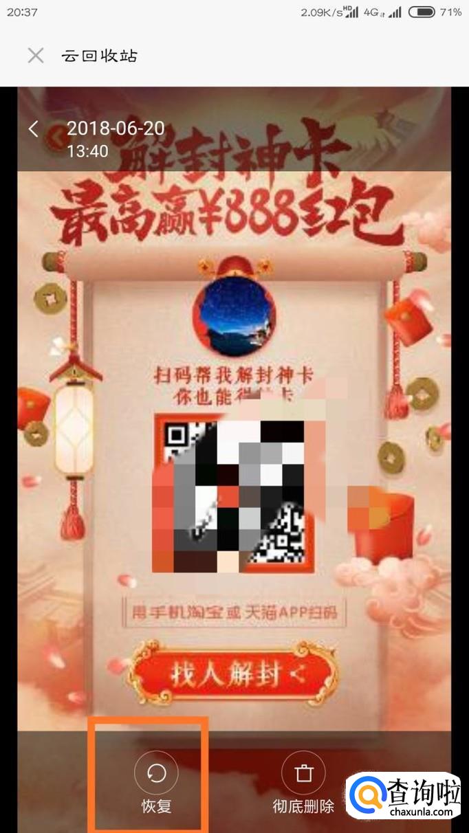然后就可以看到我们误删的照片了,找到并点击自己想要恢复的照片,按一下左下角的“恢复”按钮即可恢复。