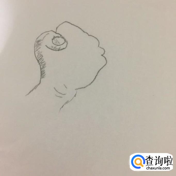 接着用铅笔勾勒出大拇指的阴影线,如下图所示。我们之所以要画阴影线是为了让画出来的大拇指更加的逼真,更加的立体。