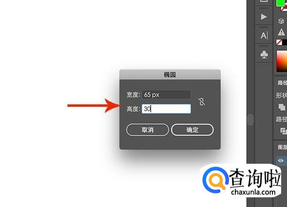 选择椭圆工具之后按回车键,创建一个65*30的椭圆。