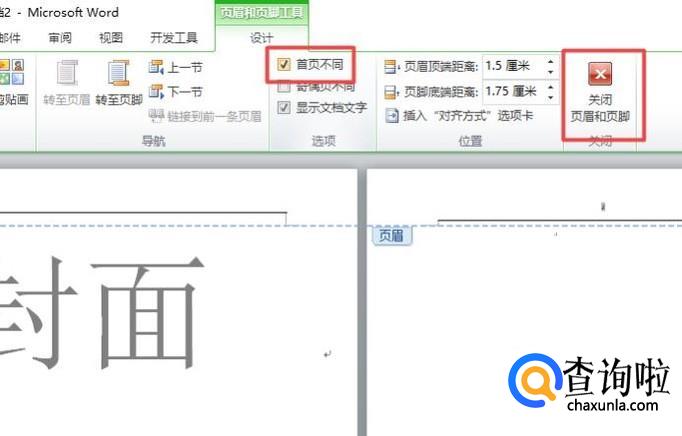 之后我们将首页不同给勾选上,然后我们点击关闭页眉和页脚;