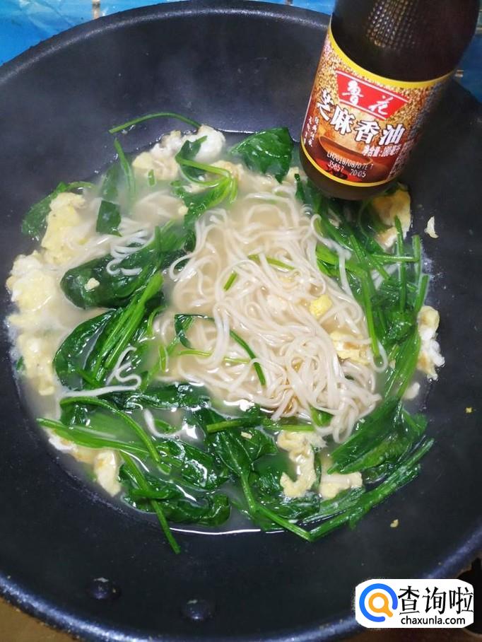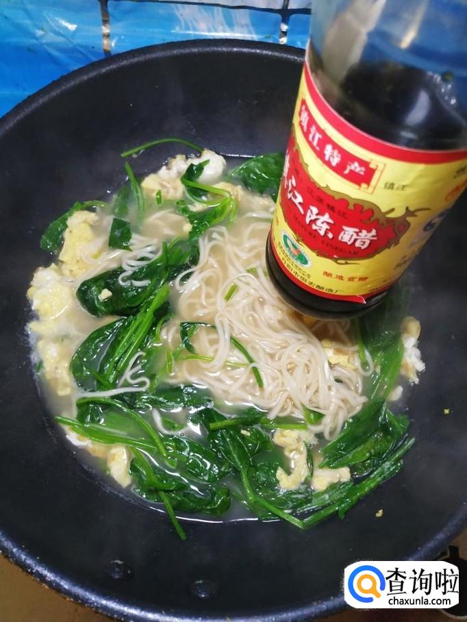 菠菜适量,鸡蛋适量,面条适量,盐适量,鸡精适量,五香粉适量,生抽适量,陈醋适量。
