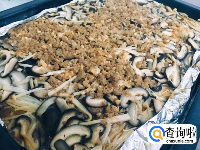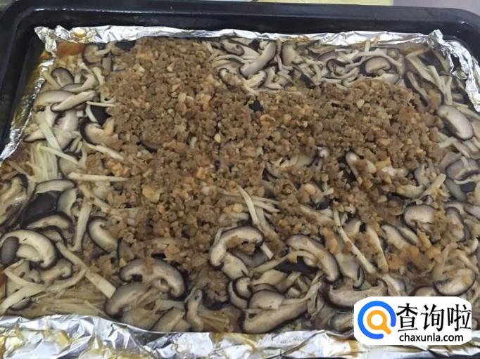 把酱汁铺在菇上,放入烤箱180度烤20分钟,表面也可以铺锡纸