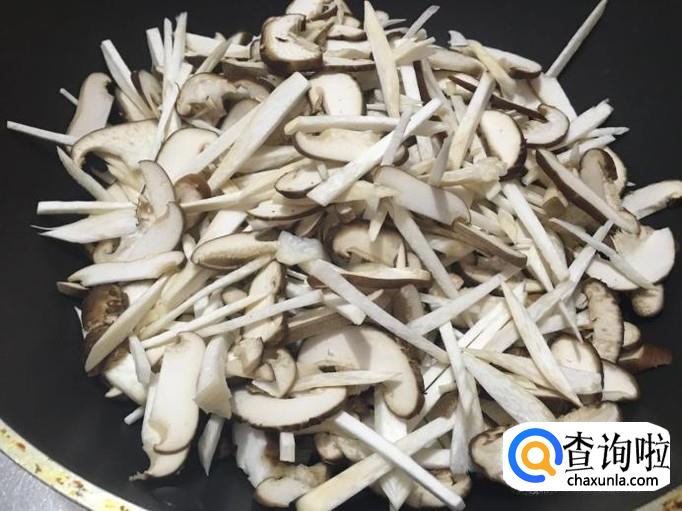 锅中不要倒油,放入杏鲍菇和香菇煸炒出水汽