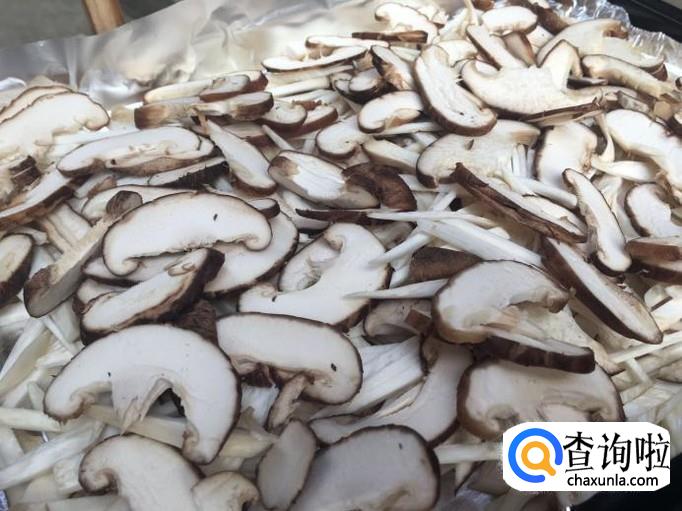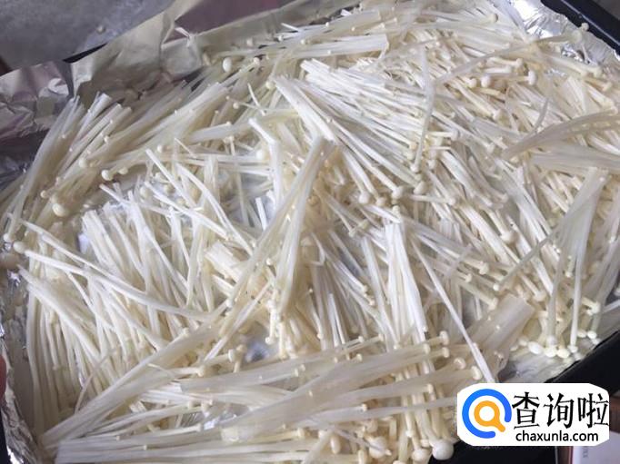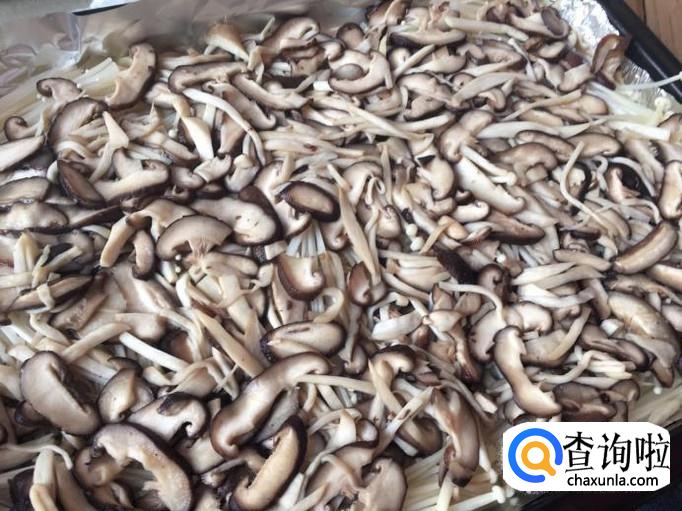 再把炒出水汽的杏鲍菇和香菇按顺序摆在金针菇上面