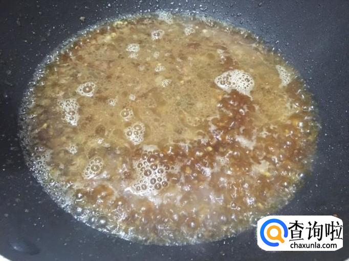 锅中倒入蒜末爆香,再倒入肉末煸炒,放入适量生抽和水