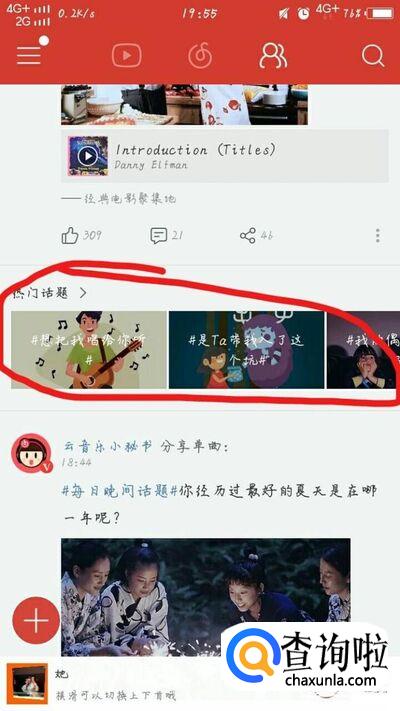 然后,点击双人的图标,然后往下拉,会出现一些热门话题。选择一个你想参加或者查看的话题