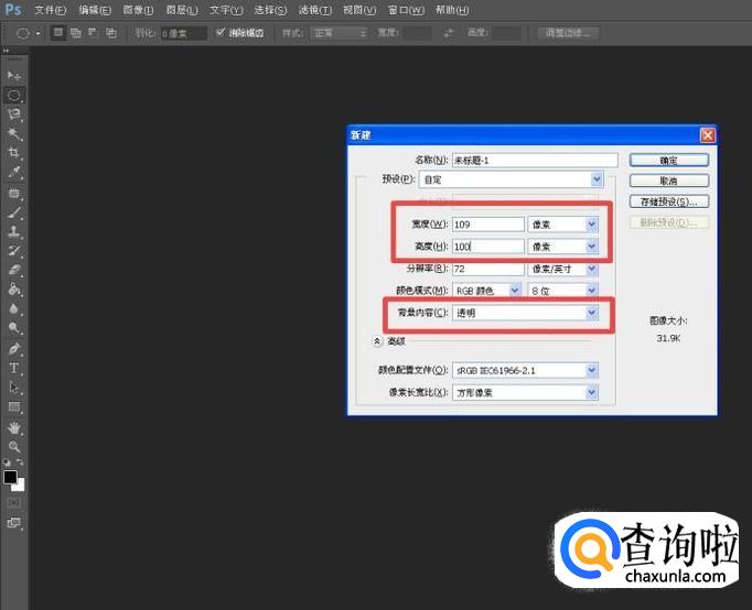首先新建一个图层,根据素材图片的像素设置宽度和高度的数值,数值越小,拼图效果的拼块数量就越多,建议用10的倍数进行设置;