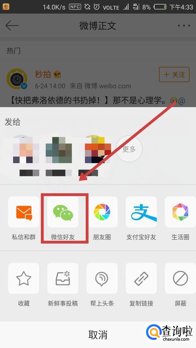 今天我来为大家介绍一下如何把微博中的视频转发给微信好友,希望能够帮到大家。