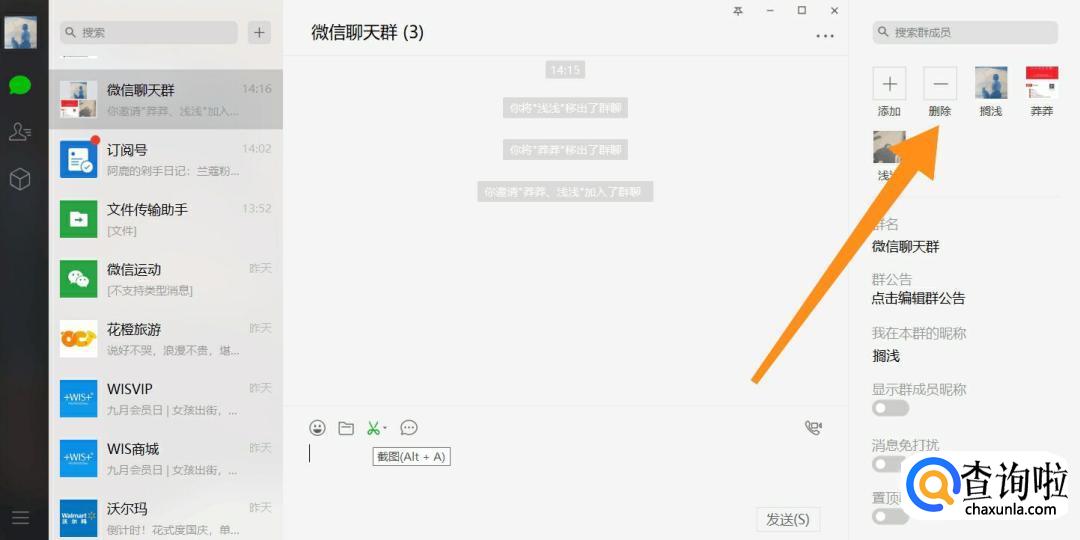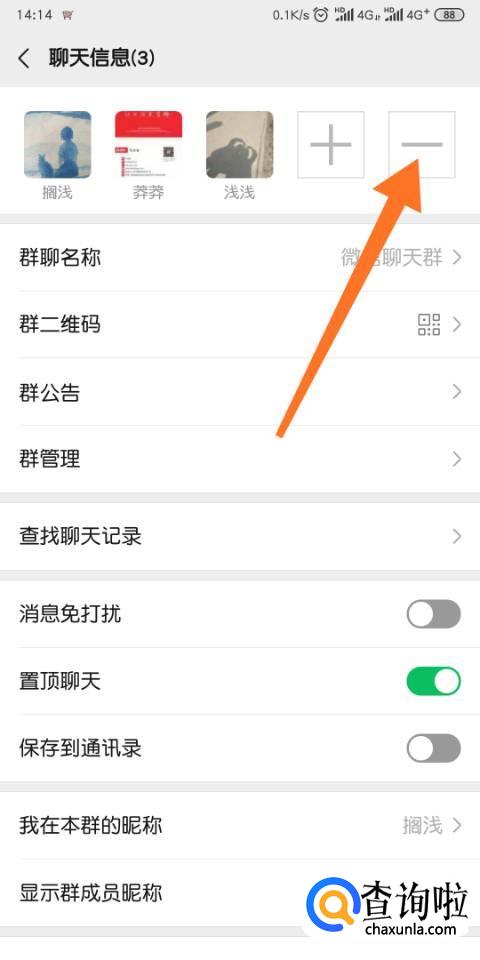 点开后,会看到显示的群成员,这时再点击“-”(减)号。