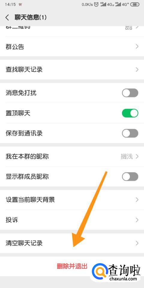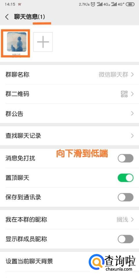 删除后是这样的,这时群里面就只有自己一个人了,我们滑到最低端。