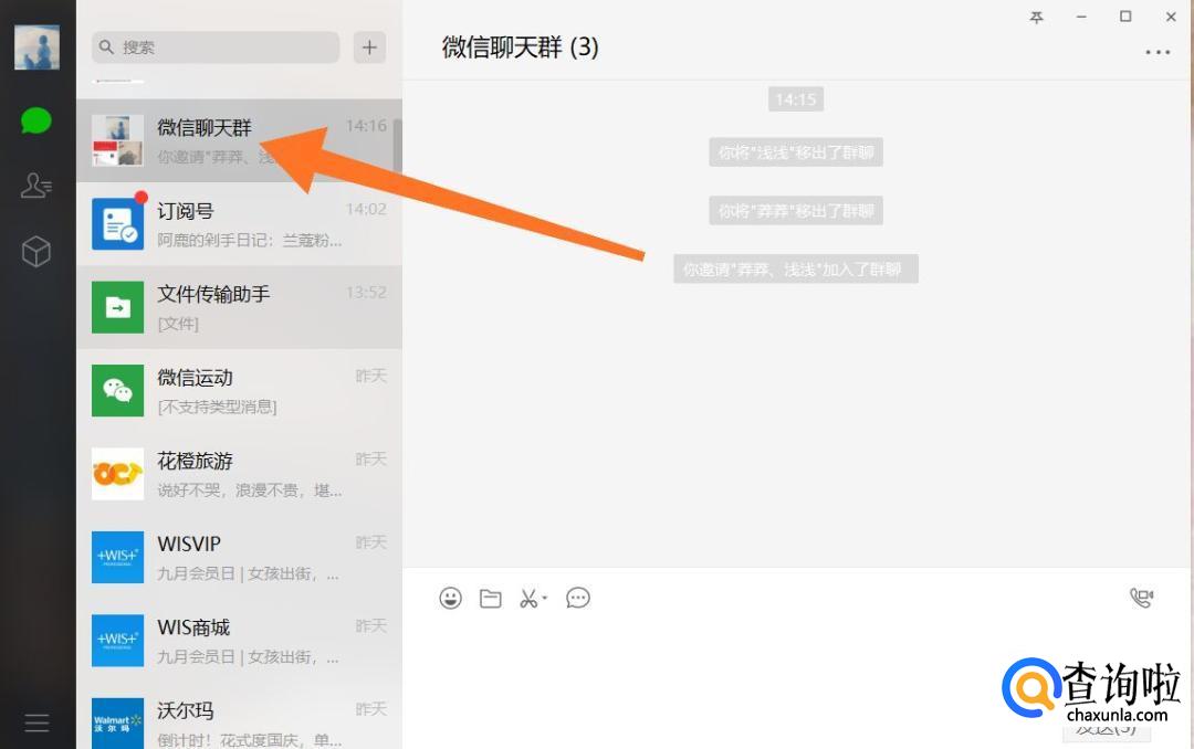 首先我们打开电脑版的微信,选中需要解散的群聊。