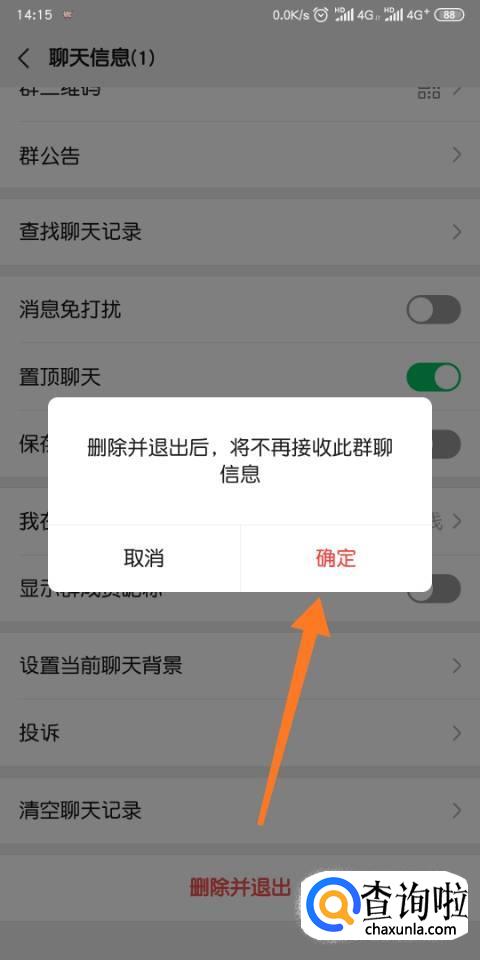 点击红色的字”确定“,然后我们就成功解散微信群了。