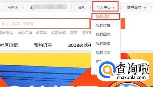 进入个人大众点评页面后,点击“个人中心”,在弹出来的下拉窗口中,点击“我的点评”