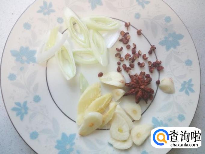 葱,姜,蒜,盐,味精,花椒,八角,红干椒,五香粉,淀粉,白糖,醋,料酒,酱油,蚝油,油。