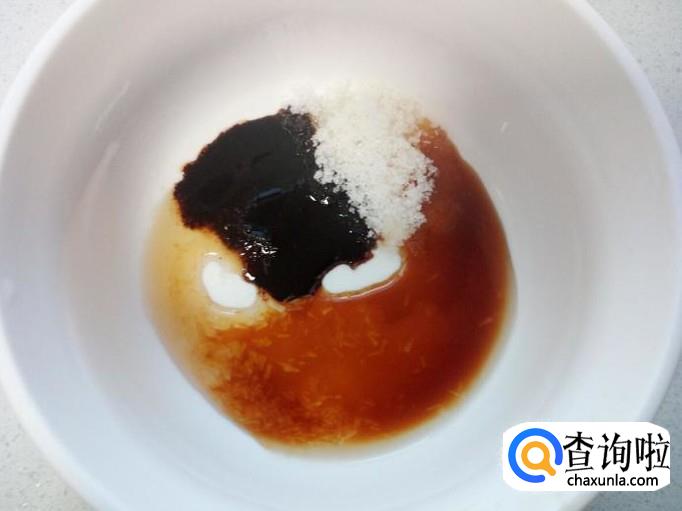 碗里放入盐,料酒,白糖,醋,酱油,少许蚝油,兑水,调和成料汁。