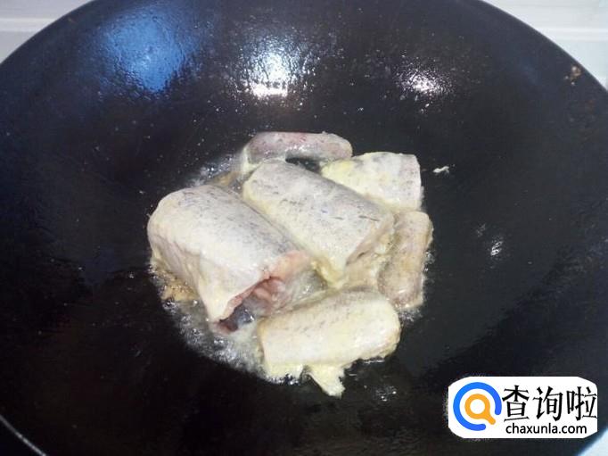 锅里放入油加热,油六,七成热时,放入鳕鱼,小火煎塌。