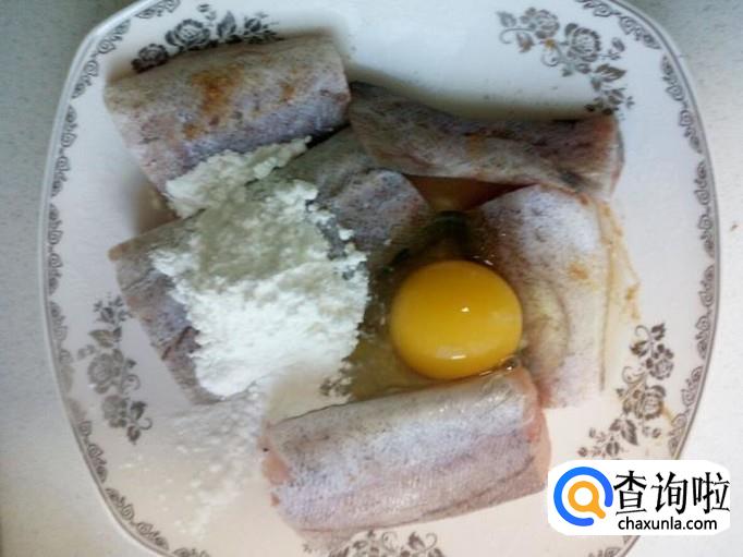 把腌制好的鱼,打入一个鸡蛋,放入适量的淀粉,拌和均匀。