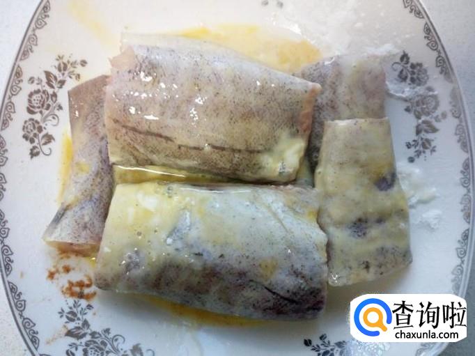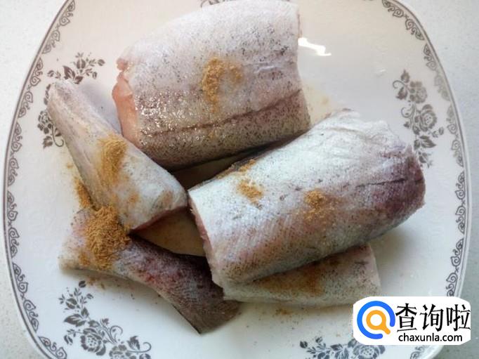 鳕鱼收拾清洗干净,控干水分,切成块。放入少许盐,五香粉,料酒,腌制20分钟。