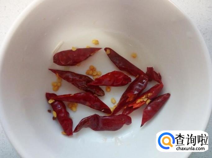 红干椒用水清洗干净,控干水分,斜刀切成段。切好葱,姜,蒜,准备好花椒,八角,备用。