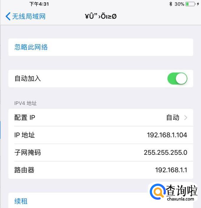 如果IP最后两位显示为“x,x”那么说明IP地址错误,这种情况就算连接了无线网也是无法使用的,我们需要修改IP即可。