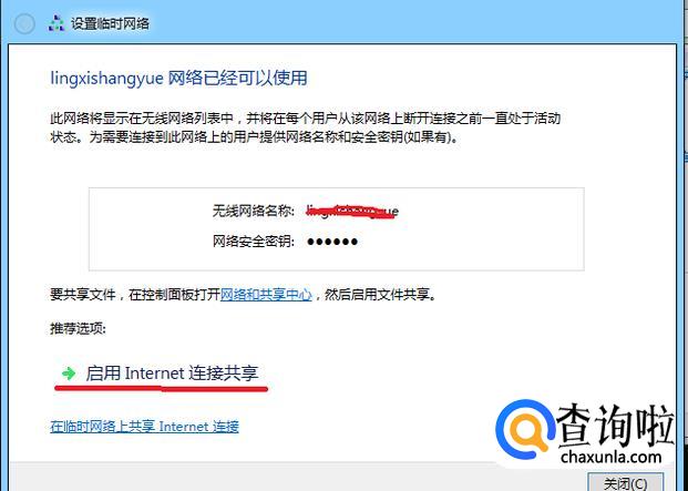 然后就会弹出可以使用的提示窗,点击“启用internet链接共享”就完成了。