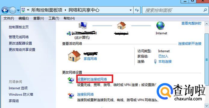 在网络和共享中心界面找到“设置新的网络或链接”选项,点开。