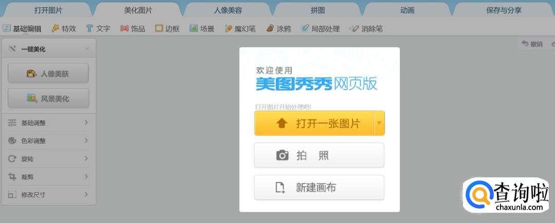 网上搜索美图秀秀网页版,点击“美化图片-打开一张图片”,选择你要修改的图片即可。