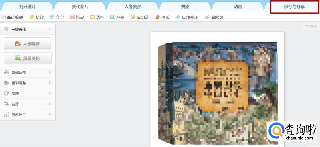 看到右上角的保存与分享功能了吧,点击它就可以选择修改图片尺寸了。