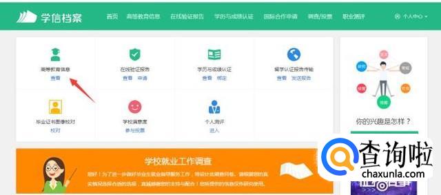 登录成功后,进入学信档案,然后找到左侧的高等教育信息点击查询