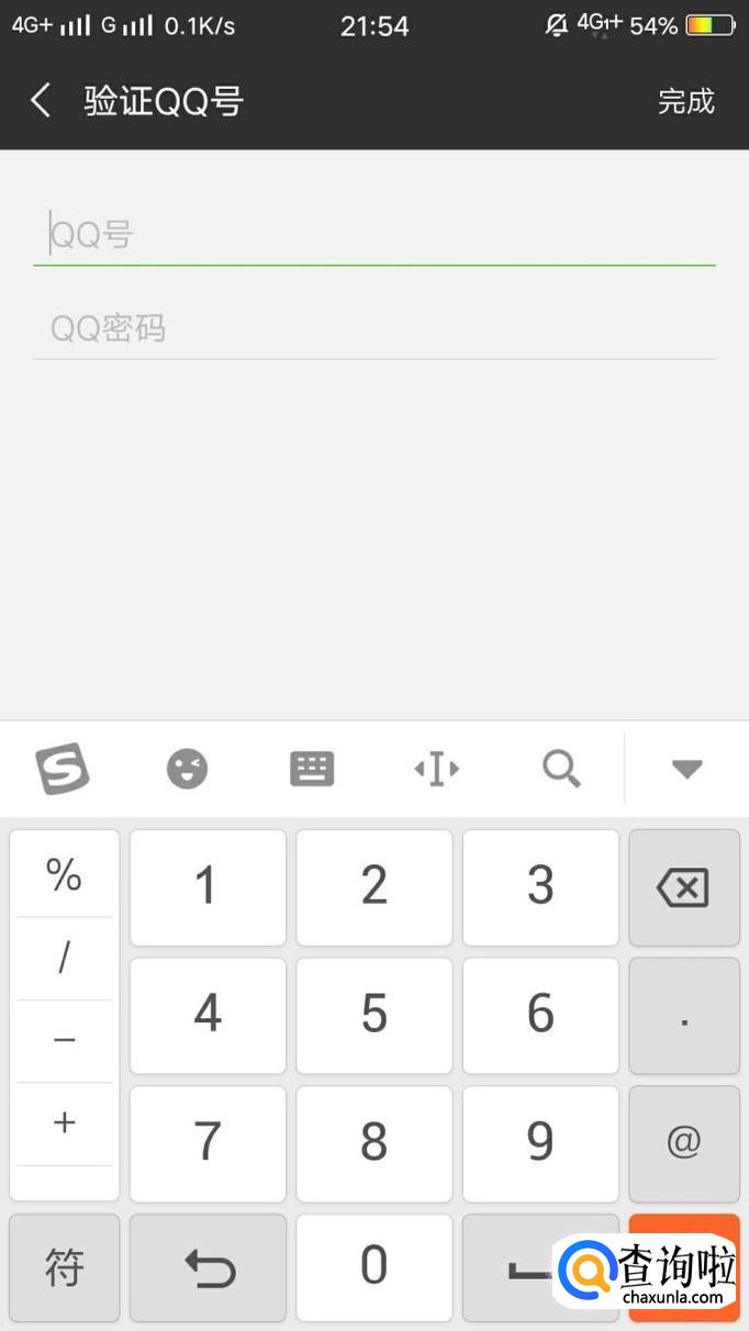 进入之后,输入QQ帐号和密码,点击“完成”即可解决QQ登录不聊微信的问题,如图所示。