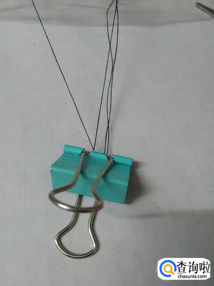 再从线轴上剪下两段长长的线,两段线要一样长。