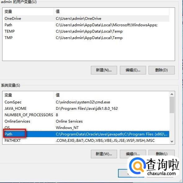 我们新创建一个JAVA_HOME的环境变量,变量值为上述步骤JDK的安装路径,D:Program FilesJavajdk1.8.0_162,如下图所示。