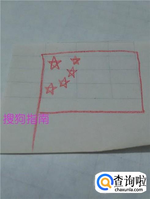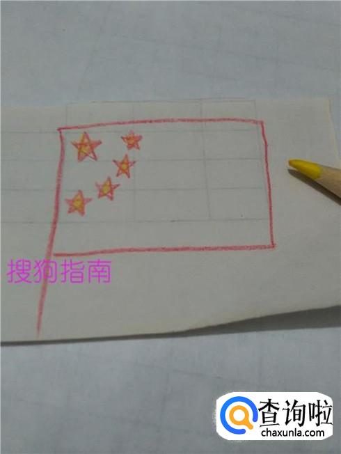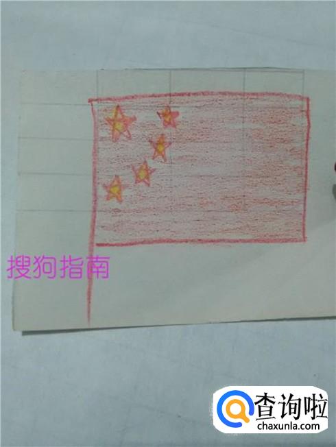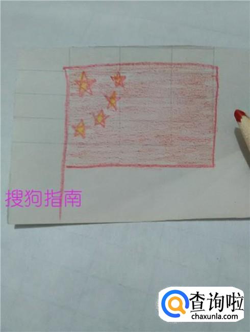用红笔将星星以外的旗子部分涂上红色,五星红旗就画完了。