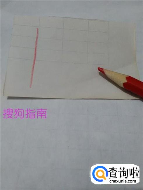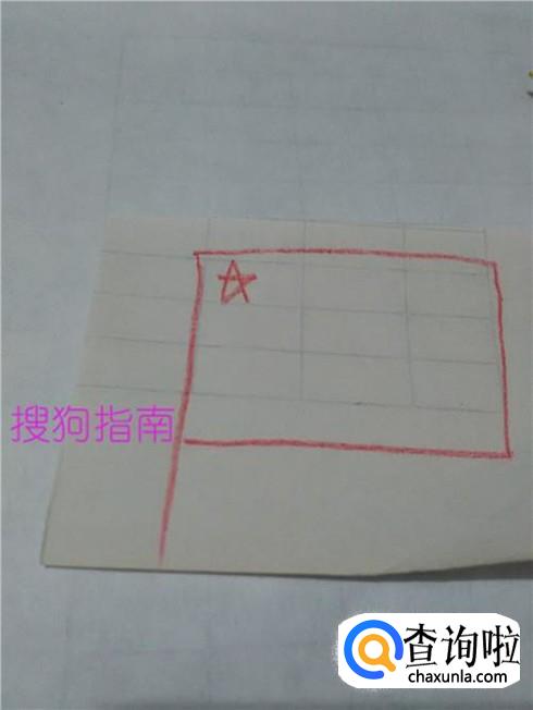 用红笔在纸上画一条竖线,表示旗杆。