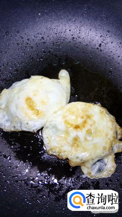 将鸡蛋煎至两面金黄,注意,一定要有耐心,否则容易糊。