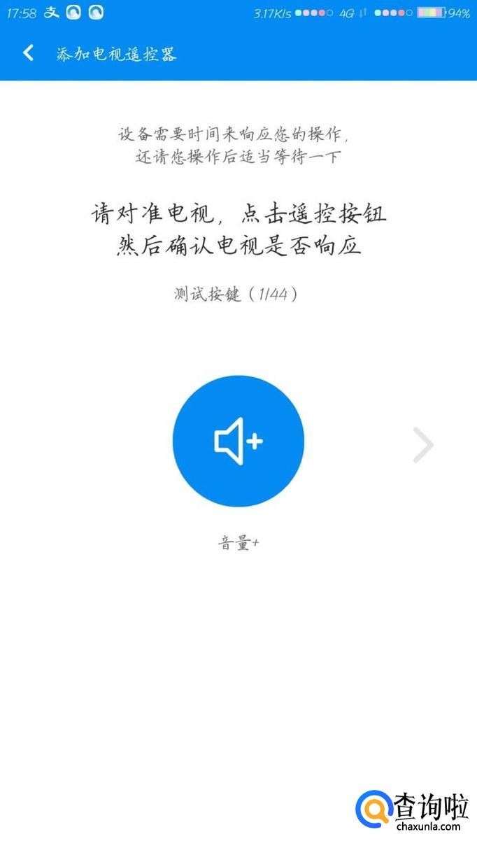 记得选择的时候手机红外发射装置要对准电视机的接收器,然后依次按键确认电视机是否有反应,有反应点"是",无就点"否"。