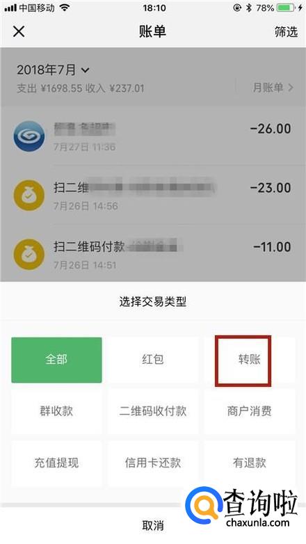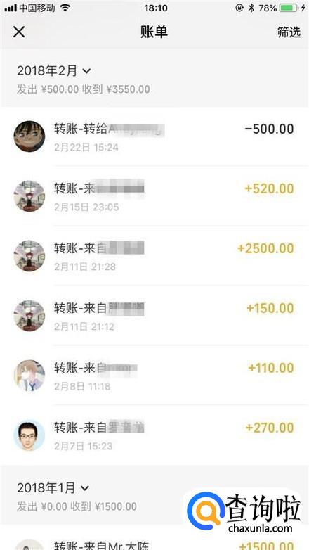 通过以上操作,我们就可以查询到我们微信的转账记录了。