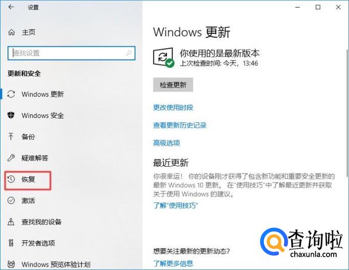 然后我们点击恢复;