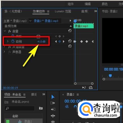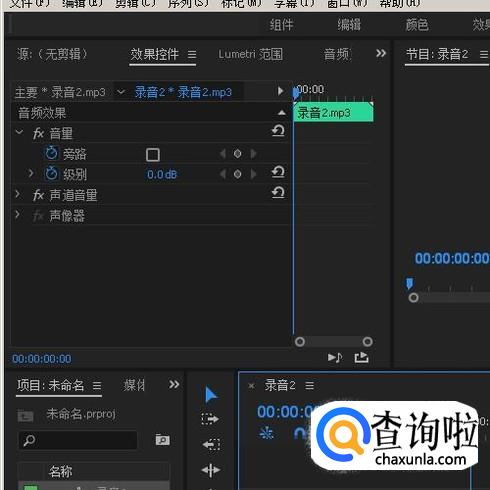 我们目光再看界面左上方的效果控件面板这里,这里有音量设置选项。