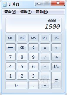 如果是分段式扣税:李四总工资6000元,按规定超过1500元需扣税15%,应该扣除多少钱?还是先输入6000,再点击“-”号,输入1500,也就是减法6000-1500=4500