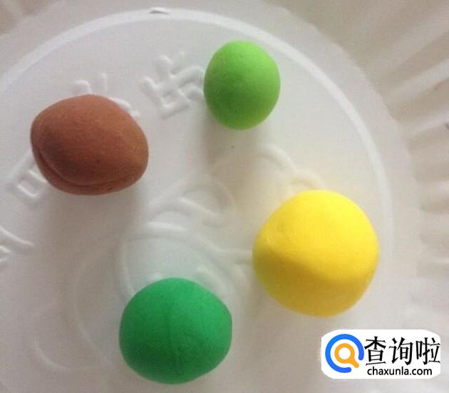 准备黄,绿,深紫颜色的塔积米,捏成小块。