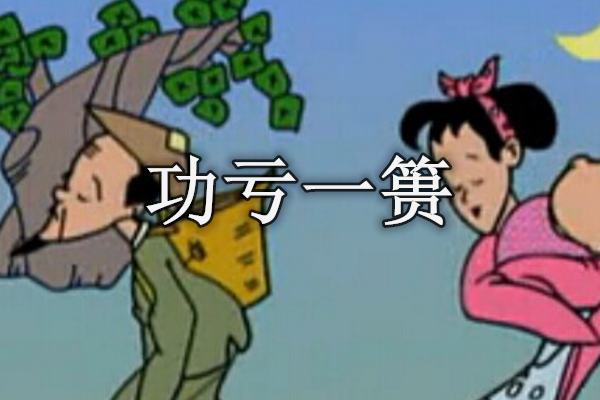 功亏一篑,亏:缺少;篑:盛土的筐子。比喻做事情只差最后一步,没能完成。用以比喻一件大事只差最后的一点力量而没有能够完成。常含惋惜之意。